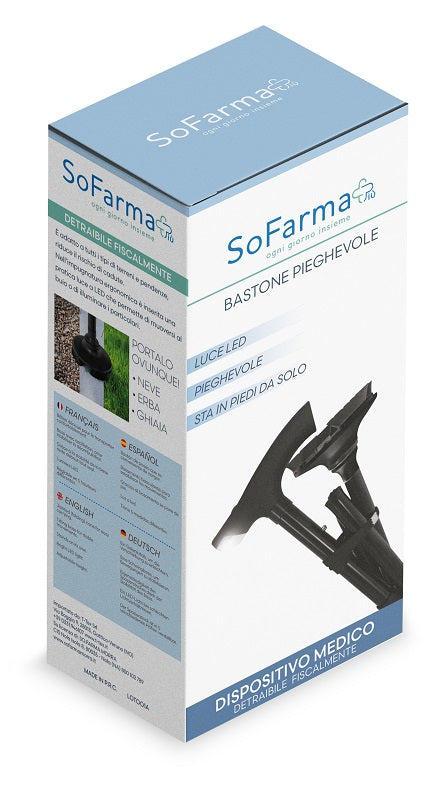 Descrizione Bastone pieghevole. Adatto a tutti i tipi di terreni e pendenze, riduce il rischio di cadute. Nell'impugnatura ergonomica è inserita una luce a LED che permette di muoversi al buio o di illuminare i particolari. Regolabile in 5 altezze diverse.