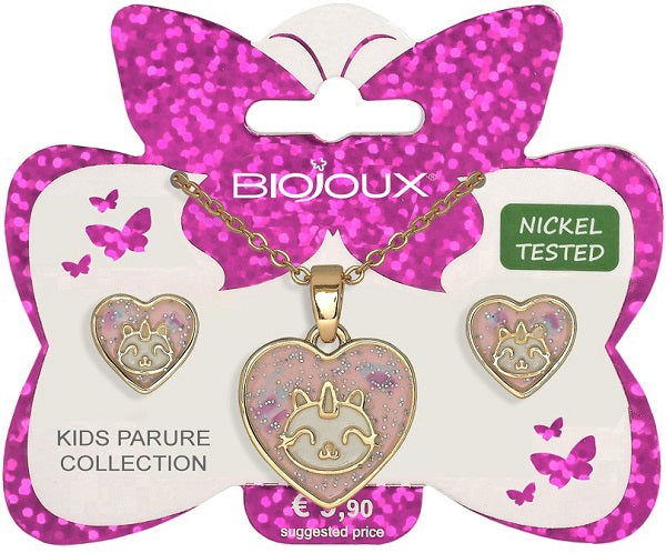 BJS006 PARURE ORECCHINI+COLLANINA UNICORN HEART GOLD PLATED